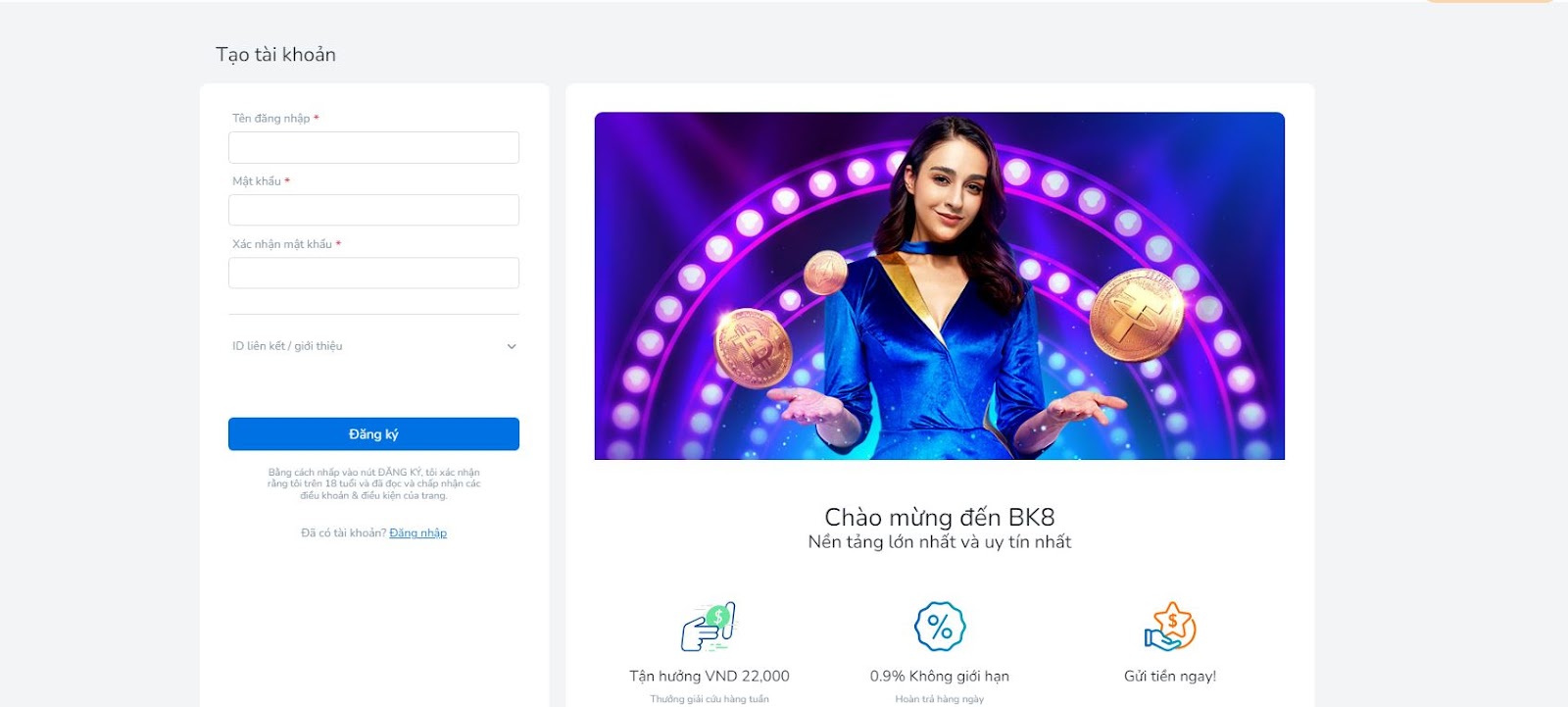 Bước 2: Tạo tài khoản BK8 (nếu chưa có)